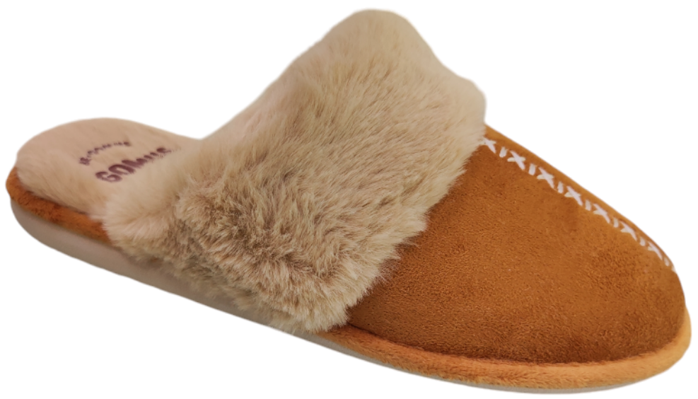 Zapatillas de casa para mujer destalonadas en paño camel
