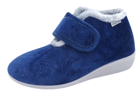 • Botas de estar en casa con cierre de velcro en paño azul marino y cuña de goma